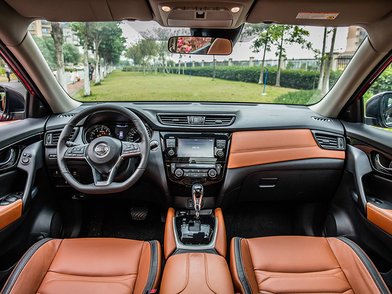 内饰方面奇骏采用了双色的配色设计,颜色碰撞的跳跃感让整车视觉效果更加出色。钢琴烤漆材质的应用、平底方向盘的设计使得整车在年轻运动化的同时不失豪华质感。按钮排布和整车内饰布局非常清晰。中控区采用高亮面板增添了一些精致感,内饰工艺水平让人满意,细节处理较为细腻。