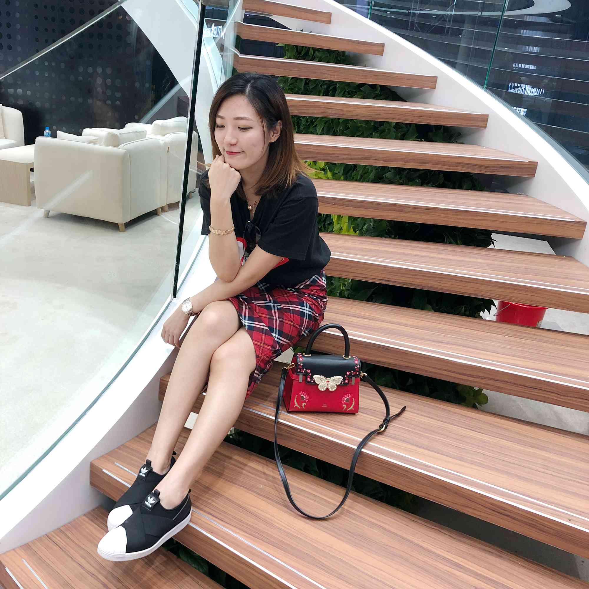 如果正面侧面都是人人人,选择在车后拍也很特别。既能秀出大长腿,还能卖萌扮可爱,妥妥的INS少女风。是小仙女本人没错了!